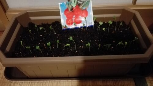 実家に帰ったら親が園芸してました。良いなあと思ったので室内栽培をしてみたいと思います。 買ったもの 植木鉢x3(1つは物入れ) 二十日大根の種、時なし小かぶの種 野菜の土(腐葉土)x2 鉢底石 鉢底ネット 園芸用はさみ スコップ 水吹き ちなみに全部100…